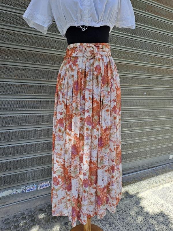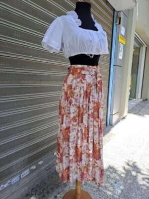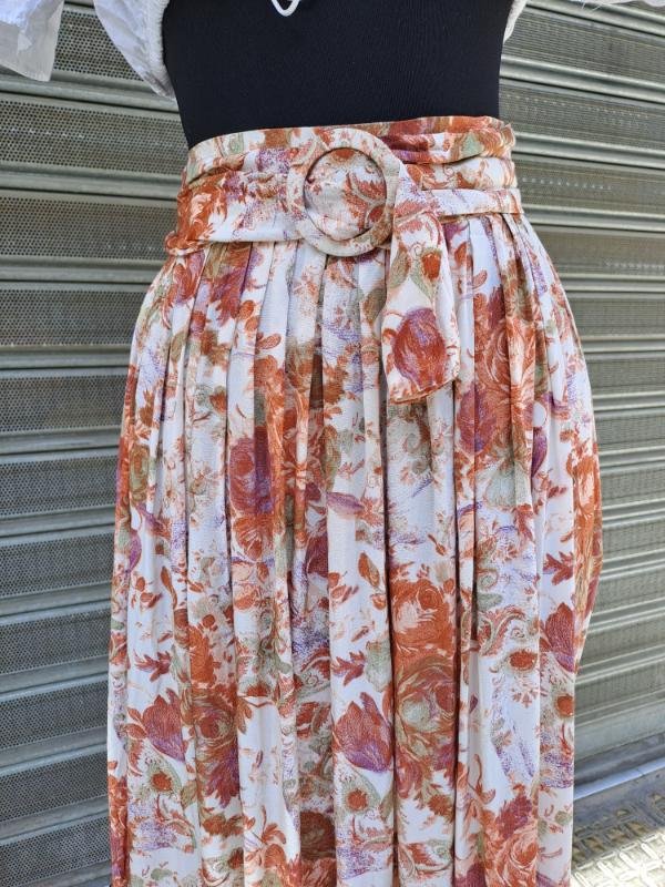 80’s vintage viscose floral midi skirt lightly pleated with pockets and belt