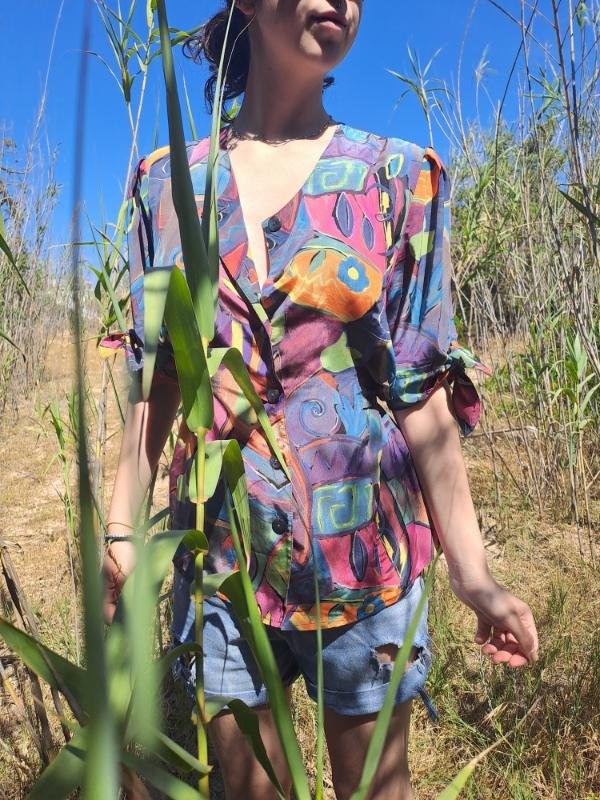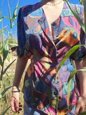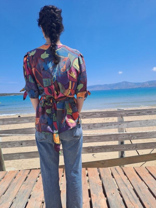 vintage abstract patterned summer shirt with back belt