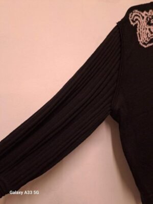 vintage black knitted sweater with metalic squirls and pleated sleeves
