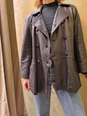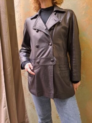 vintage black leather jacket buttoned up