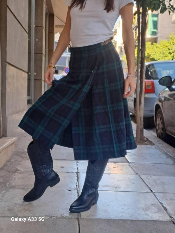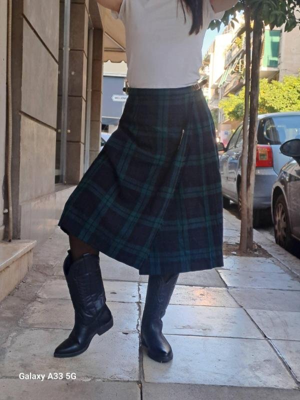 vintage blue & green wool plaid wrap skirt