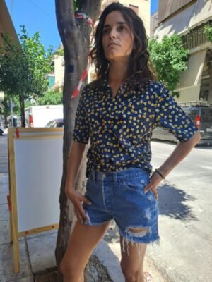 vintage dark blue cotton floral shirt