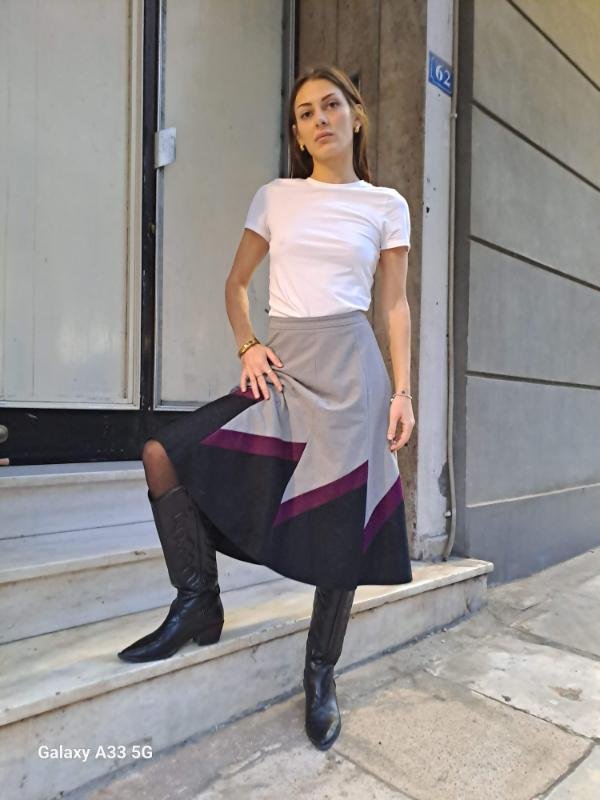 vintage grey velour geometric skirt