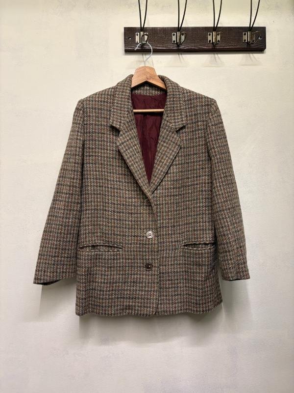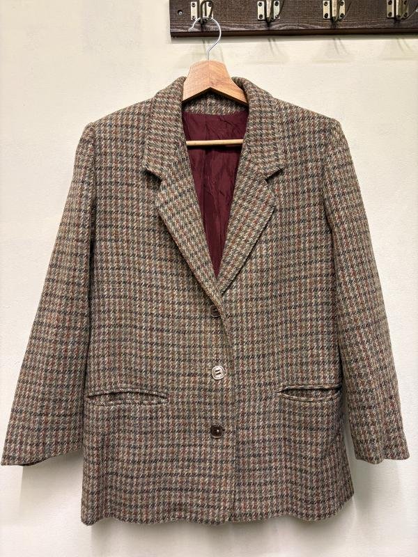 vintage Harris Tweed 100% wool hand woven plaid blazer