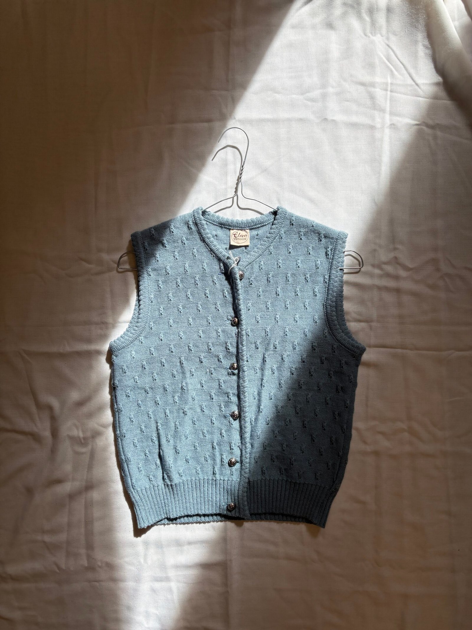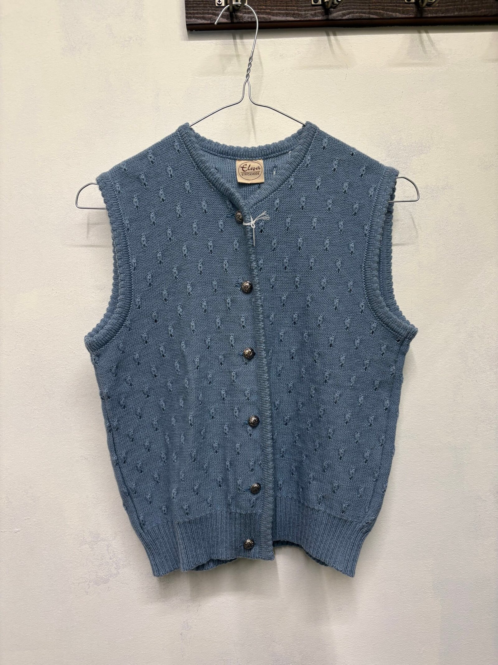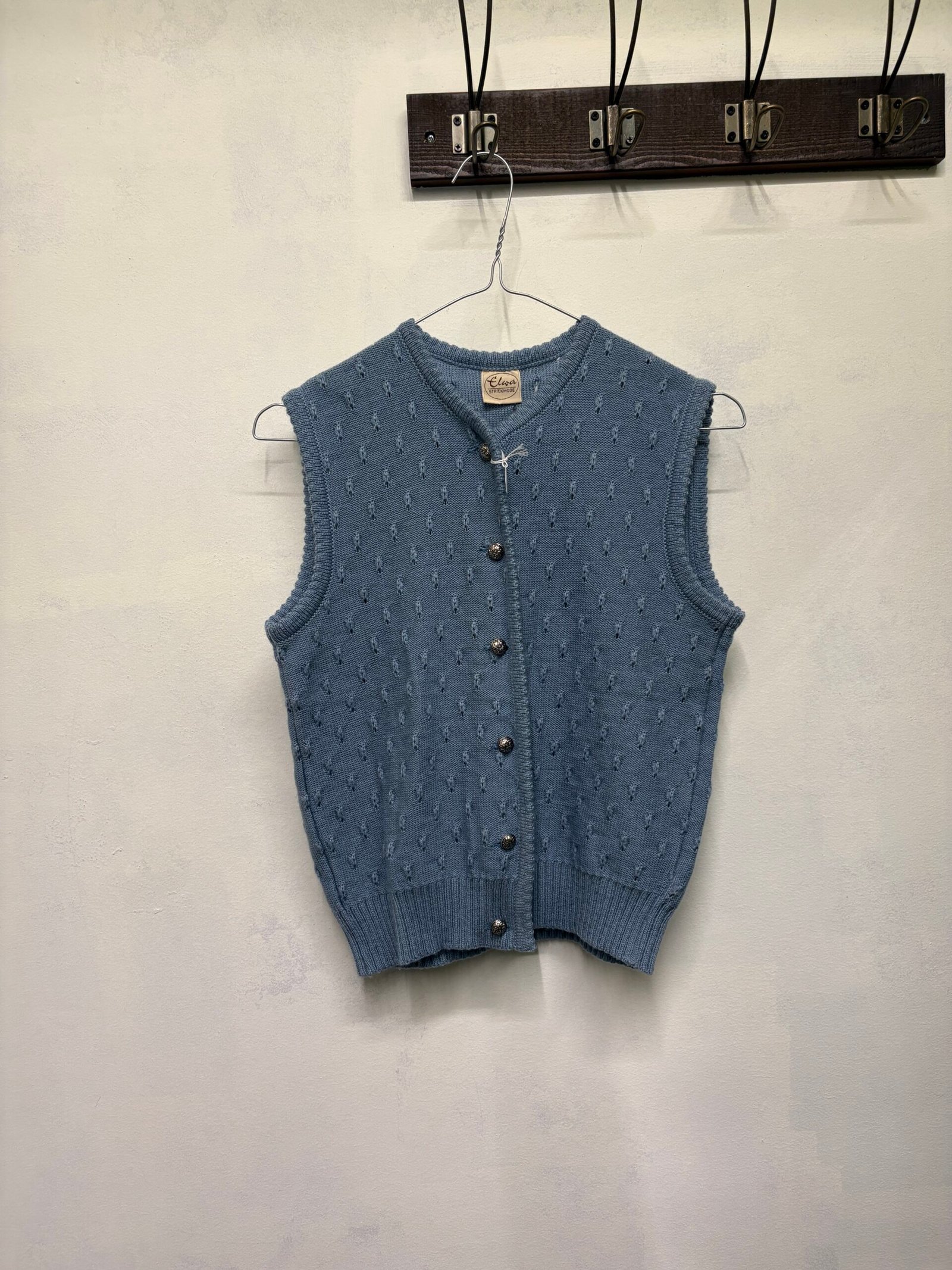 vintage knitted wool blend blue grey vest