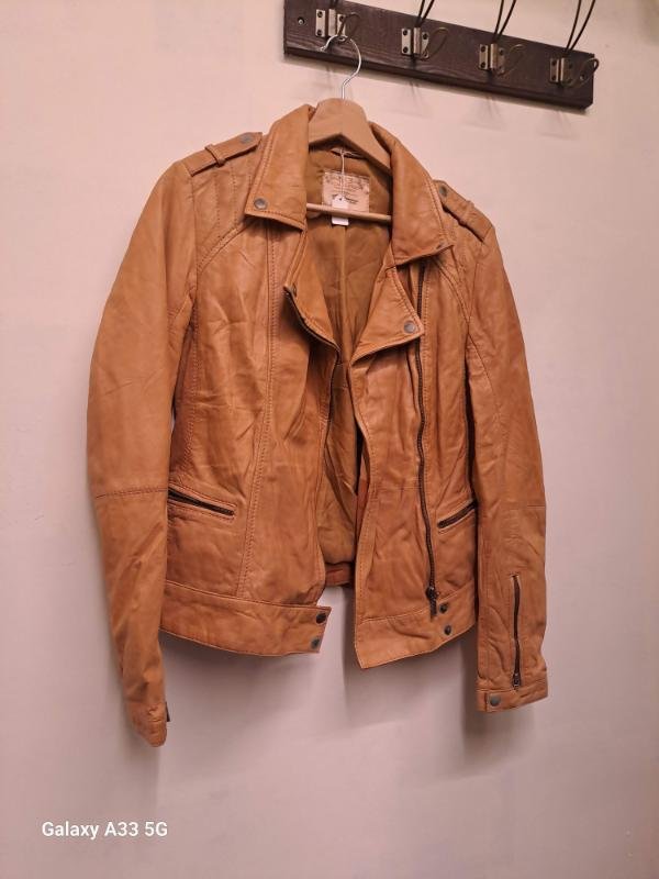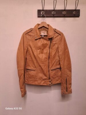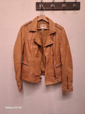 vintage leather camel brown moto style jacket