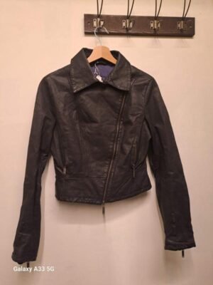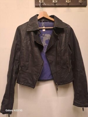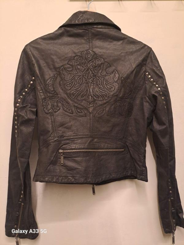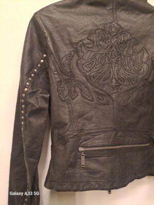 vintage Lynne black cropped leather moto jacket with embellished back and studded sleeves