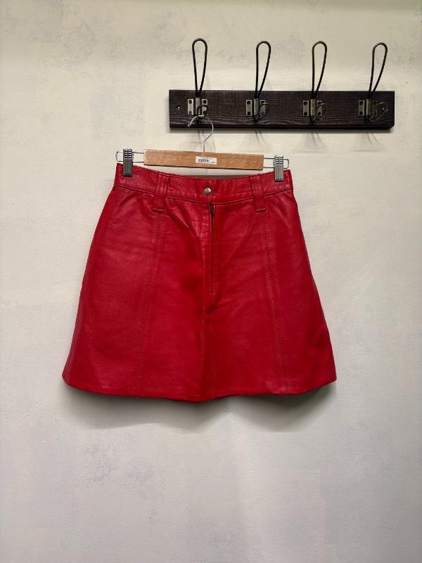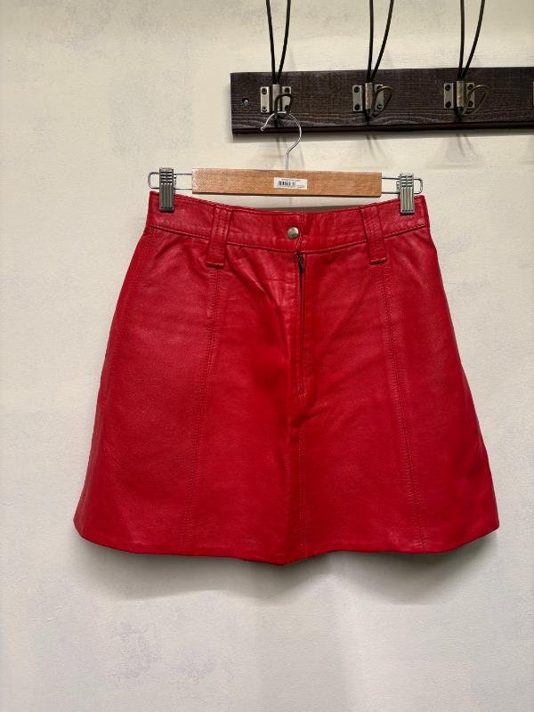 vintage mini leather red skirt, A line