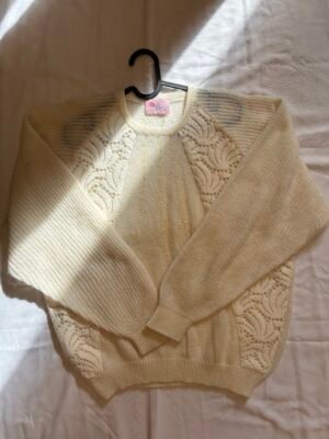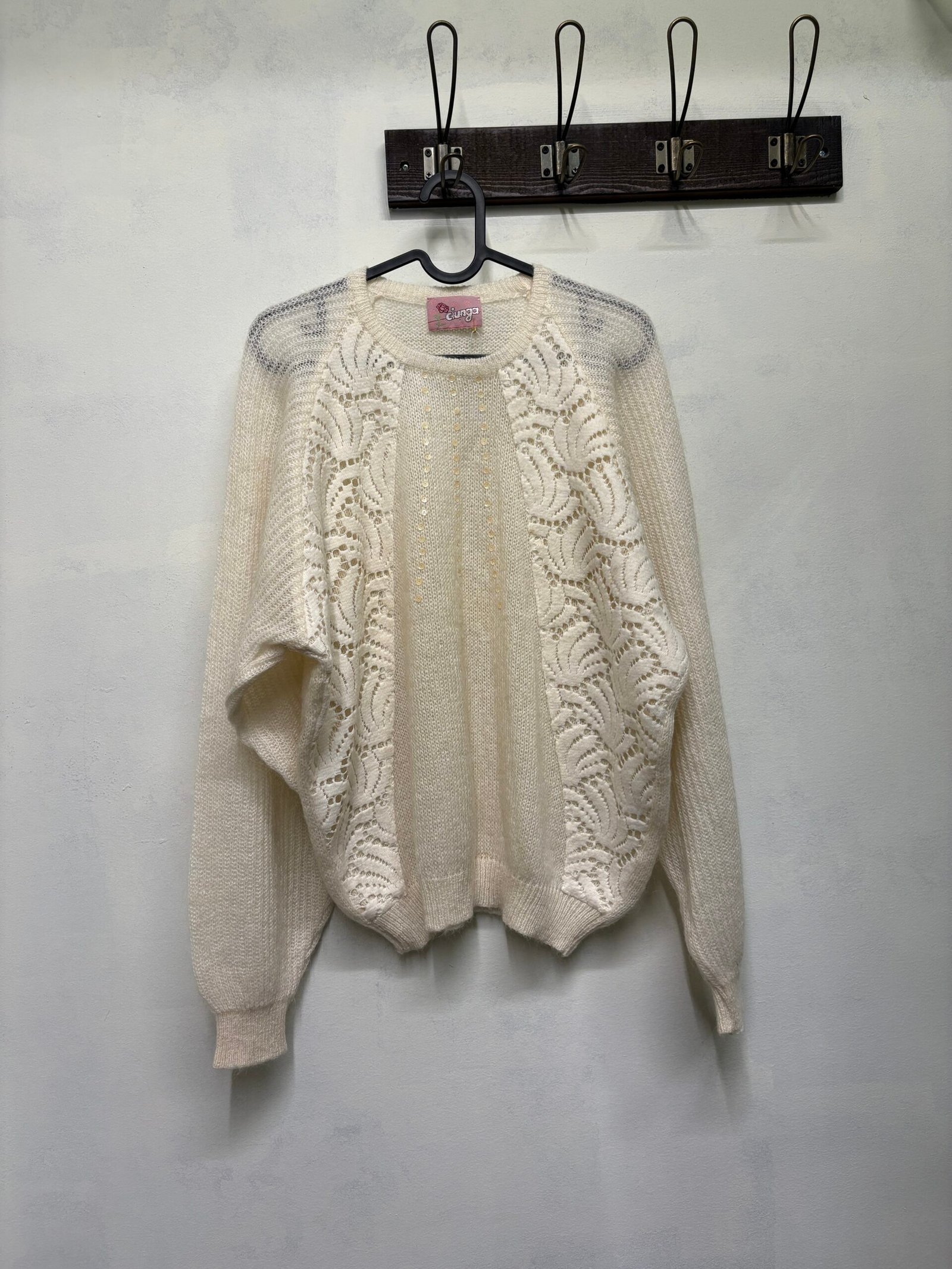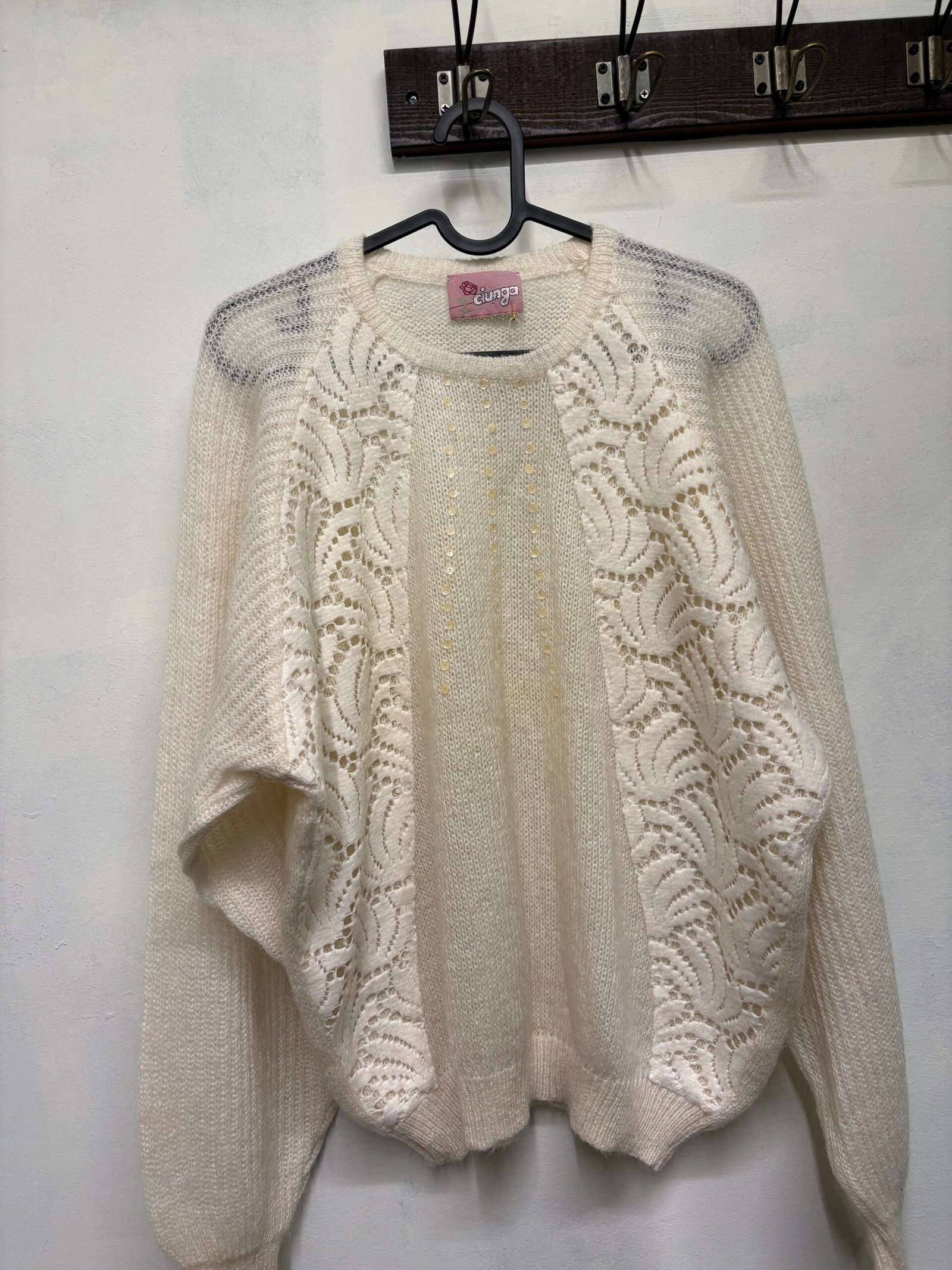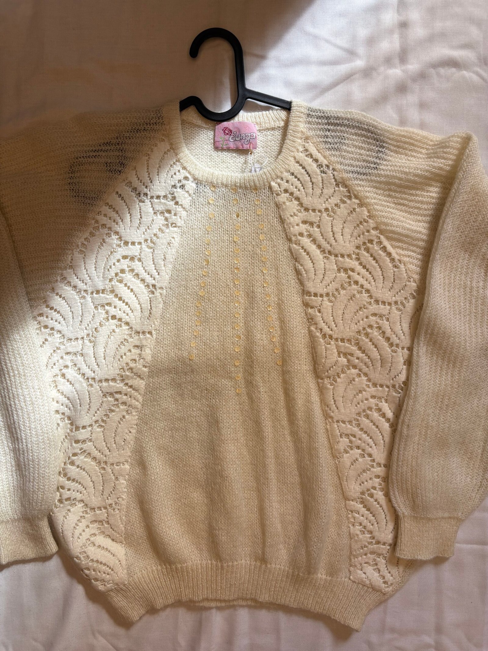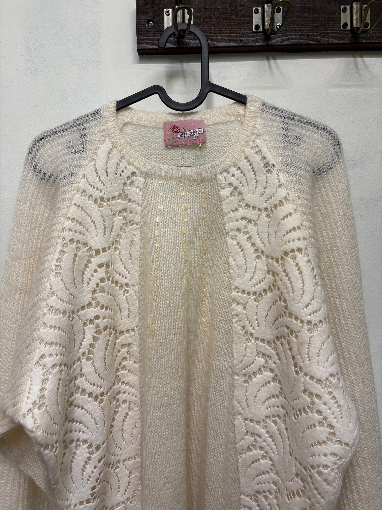 vintage romantic mohair cream knitted sweater with lace and sequin details