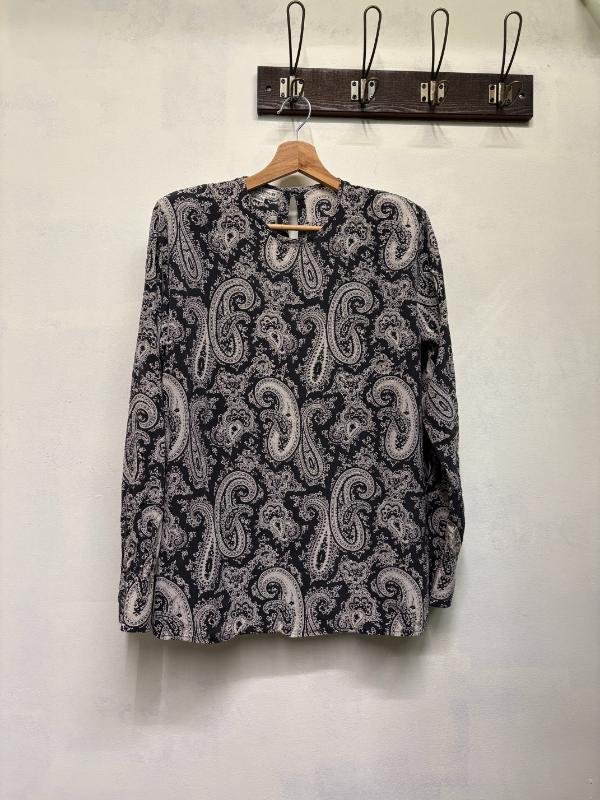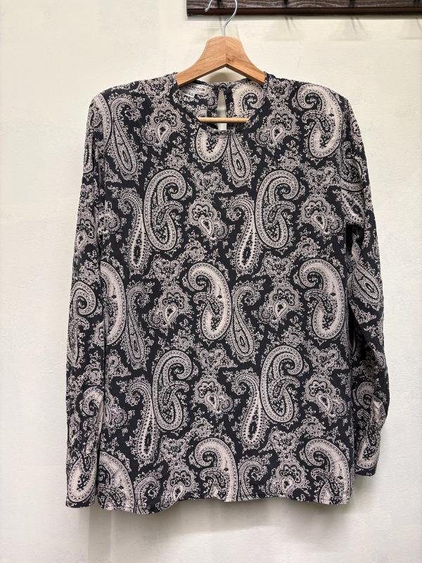 vintage silk black & white paisley blouse