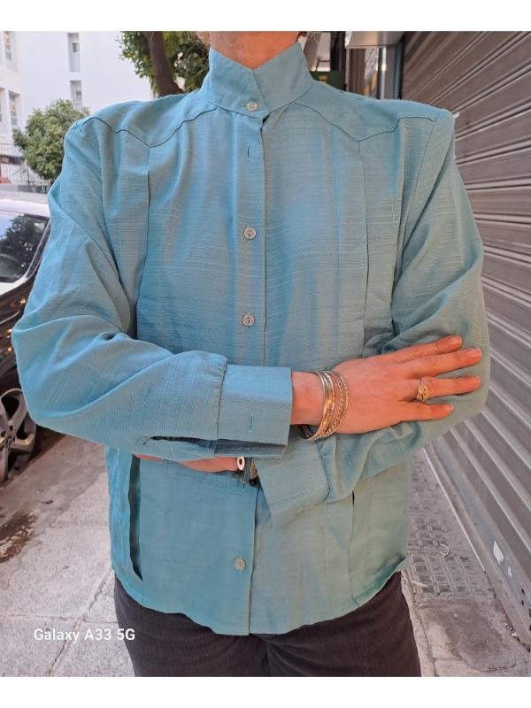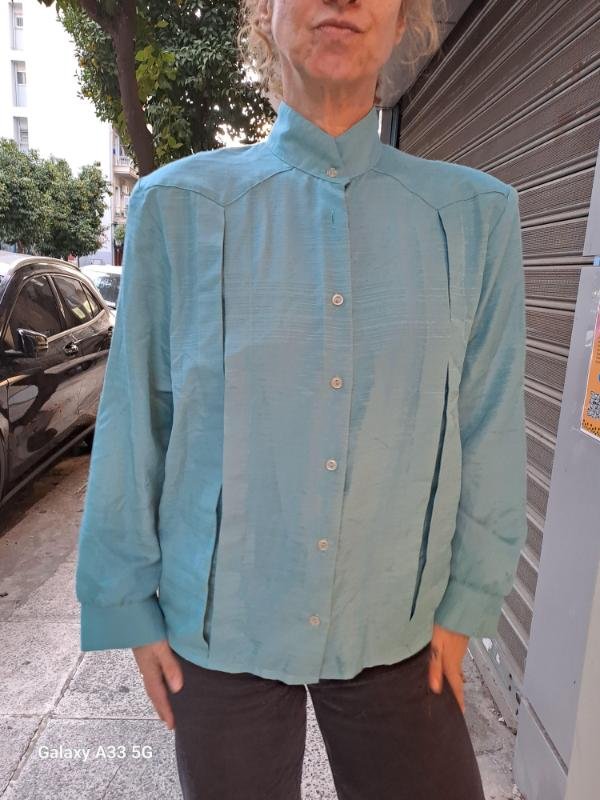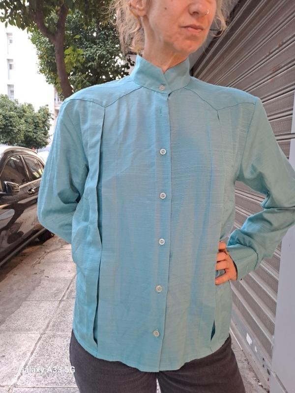 vintage teal green shirt with front pleats