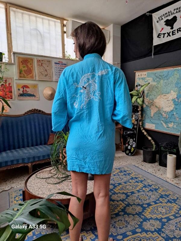 vintage turqoise dragon kimono