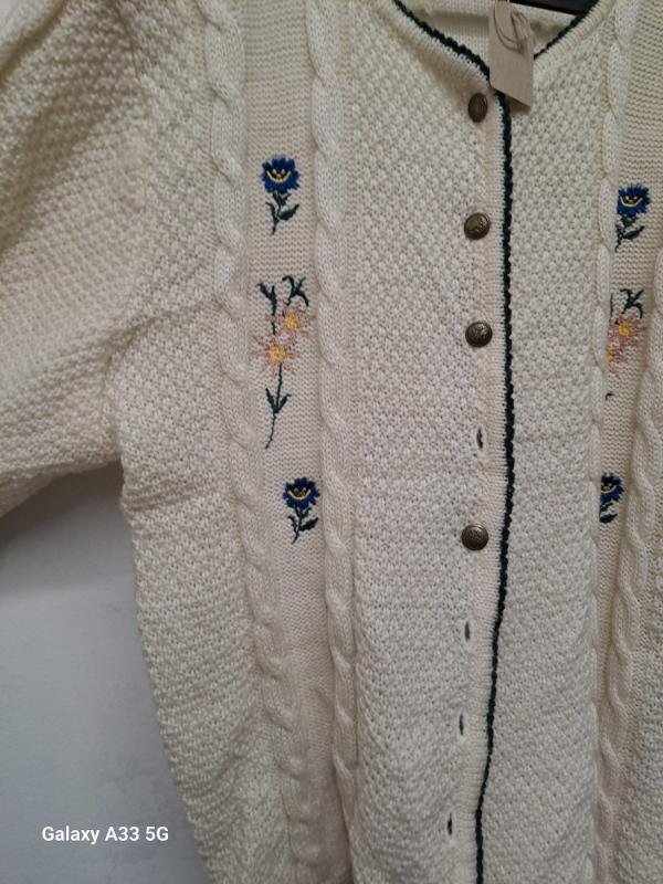 vintage tyrolean cream knitted cardigan with floral embroidery