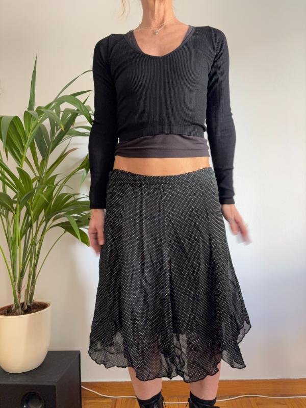 vintage viscose black & white polka dot flare skirt with side belt