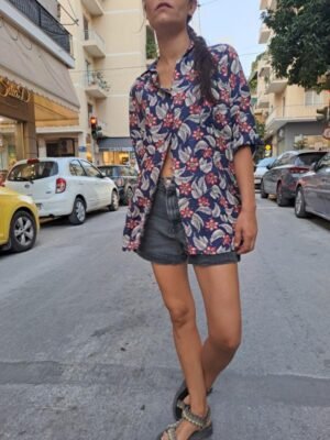 vintage viscose dark blue floral shirt