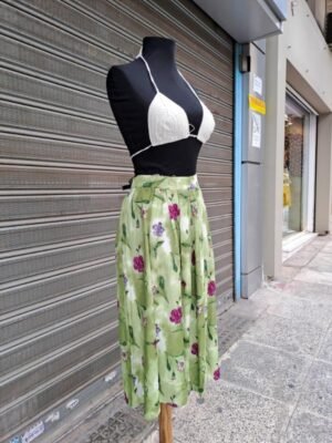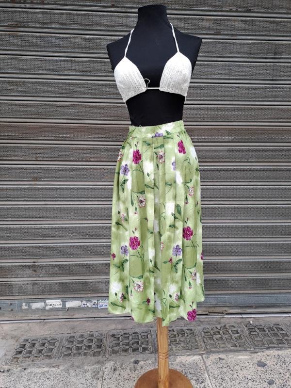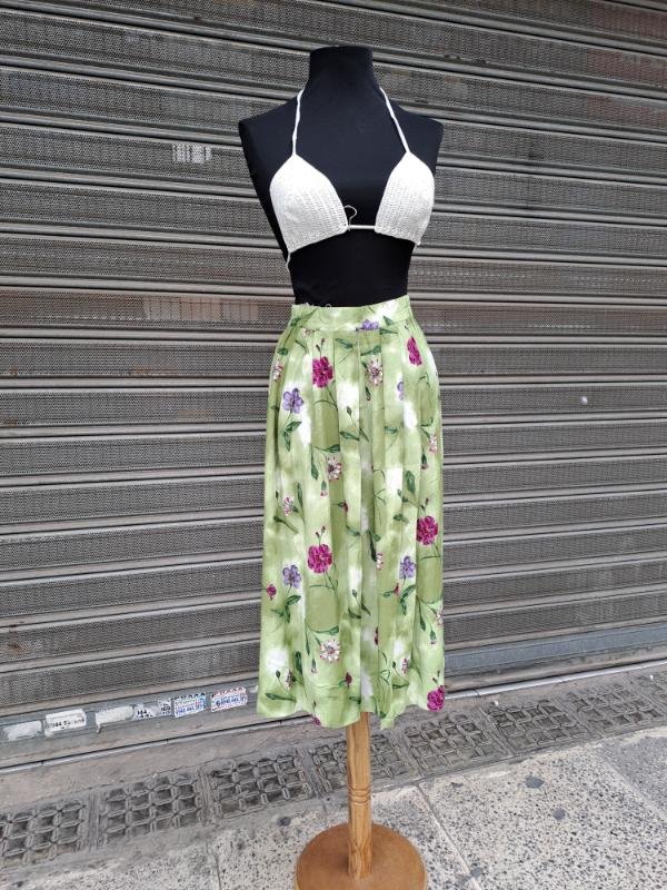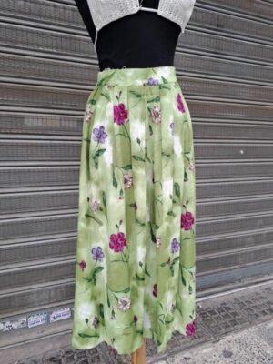 vintage viscose floral light green pleated midi skirt
