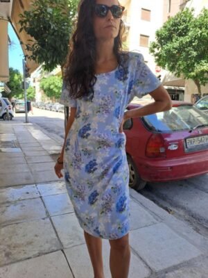vintage viscose light blue floral midi dress
