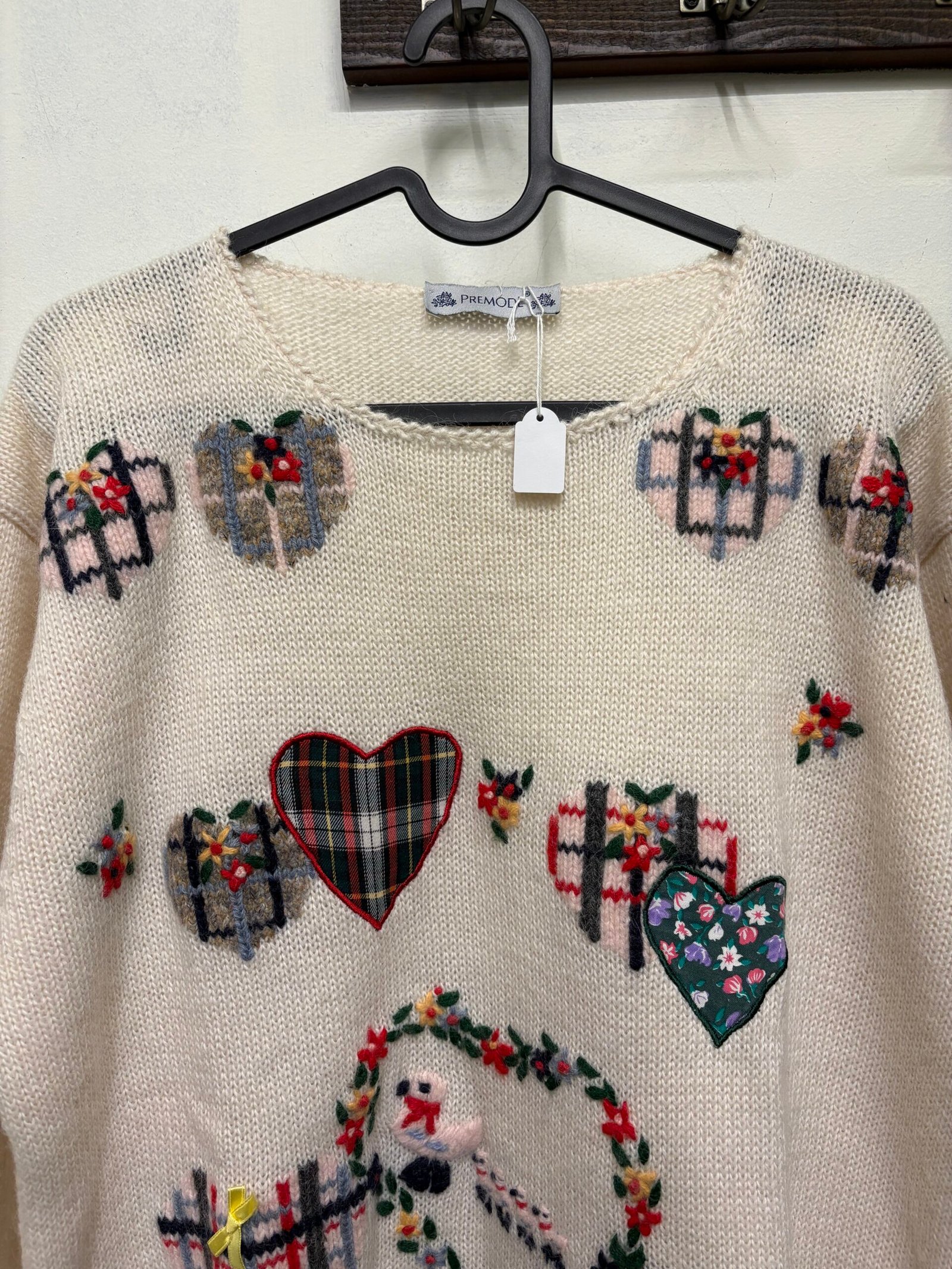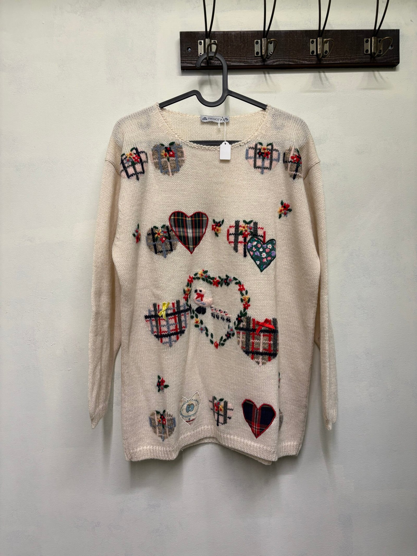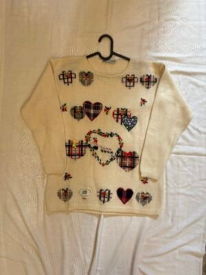 vintage wool & alpaca blend knitted cream sweater with hearts
