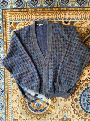 vintage unisex wool & alpaca knitted pied de coq granpa’s cardigan
