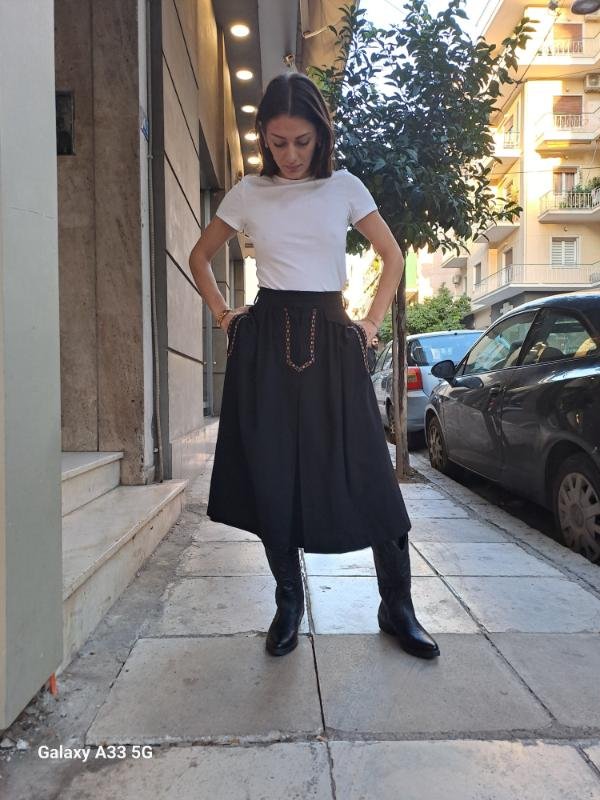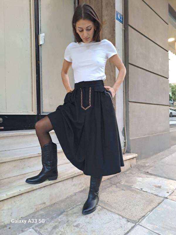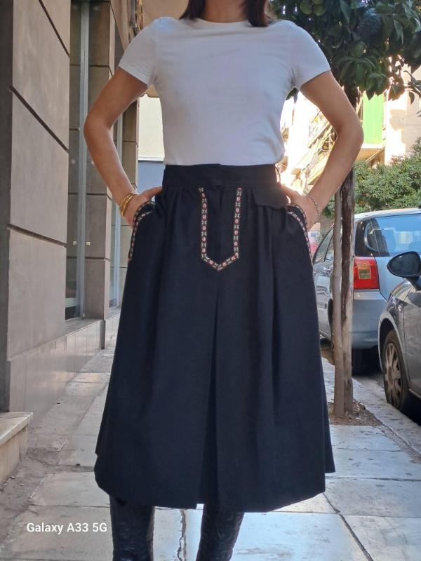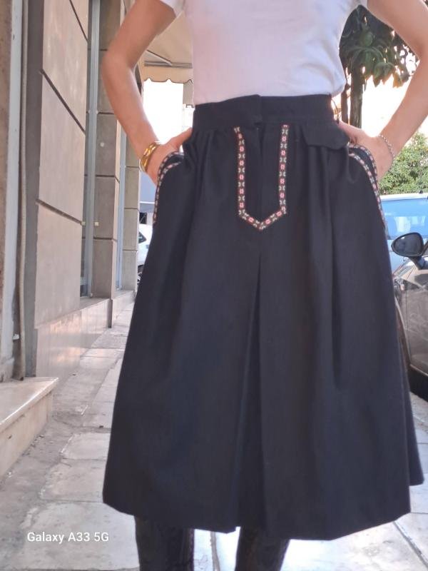 vintage wool black skirt with floral trims