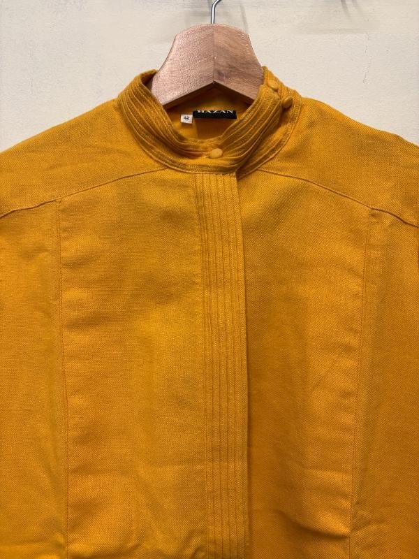 vintage wool golden yellow shirt with mao colar