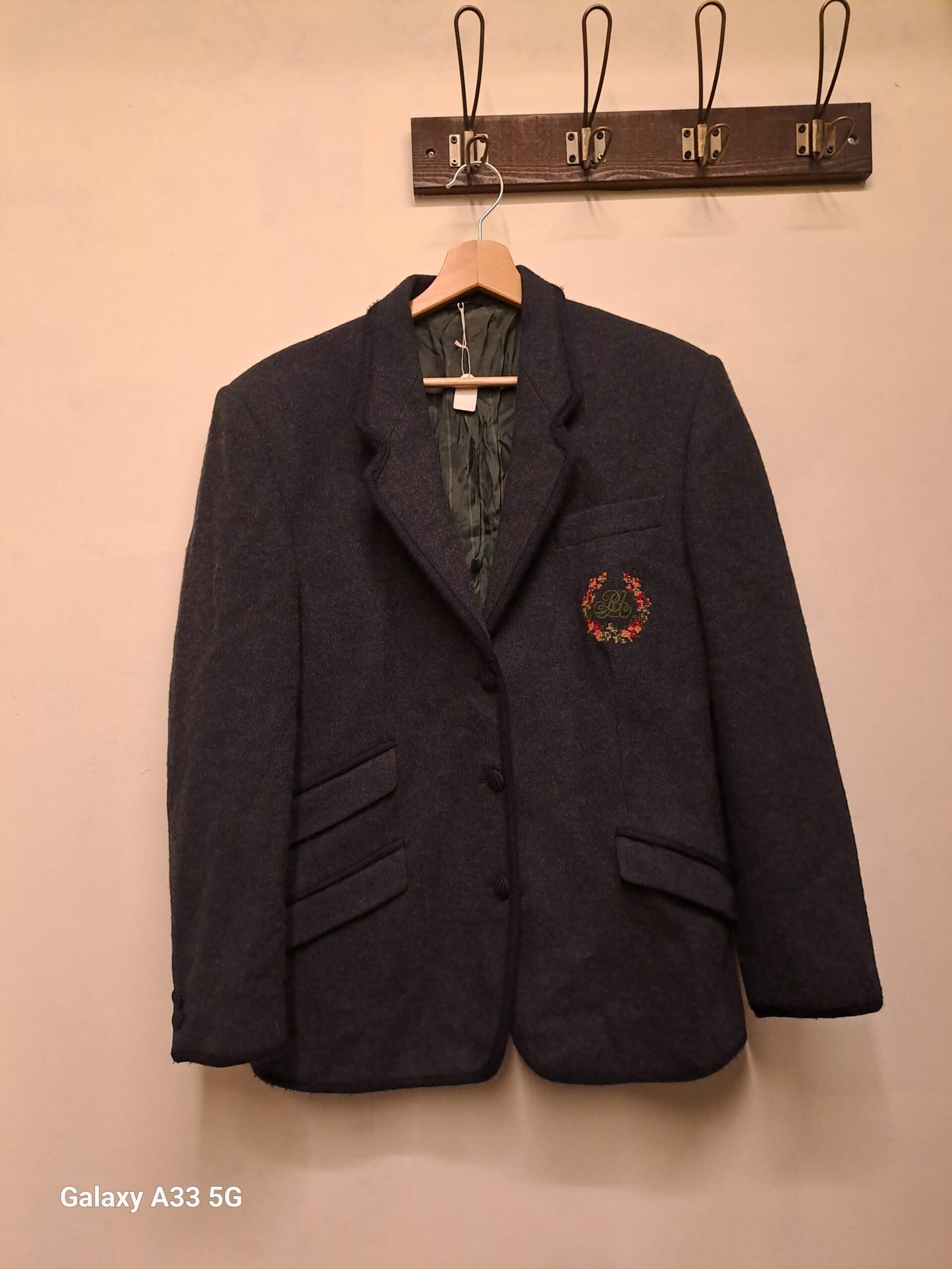 vintage wool mix blue blazer with a badge