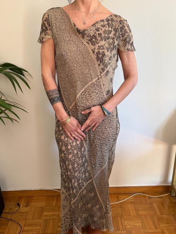 y2k sheer maxi dress earthy tones